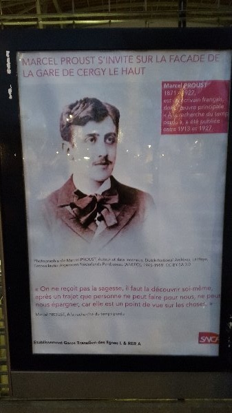 La gare RER de Cergy-le-haut s'est mise à l'heure proustienne ! Verrons-nous se multiplier ces initiatives pour saluer comme il se doit le 100e anniversaire du Goncourt ?
