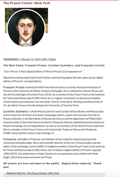 - "Corr-Proust: A New Digital Edition of Marcel Proust’s Correspondence" 14/2/19
