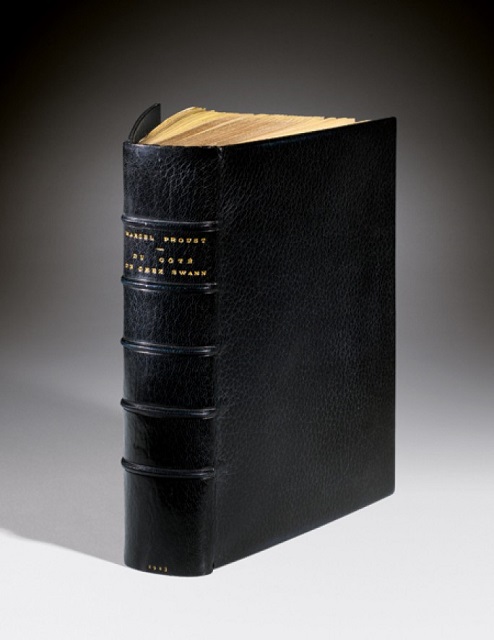 “...and the ultra-famous copy of Du côté de chez Swann, the first ever printed on Japan paper, given by Marcel Proust to Lucien Daudet.”