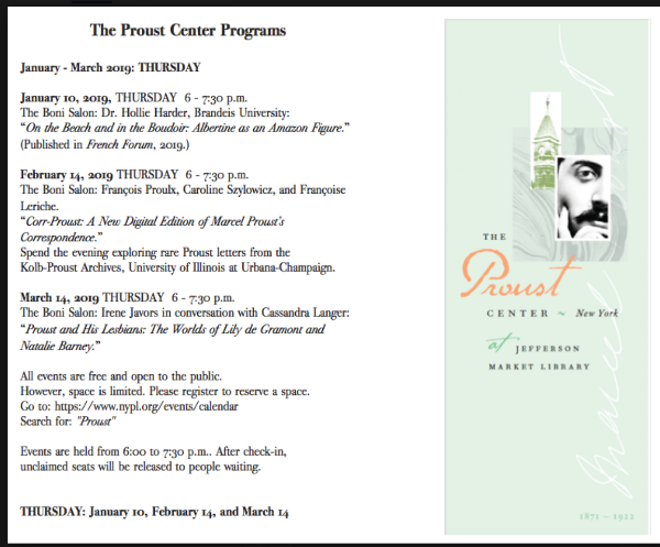 - The Proust Center~New York Programs for January-March 2019